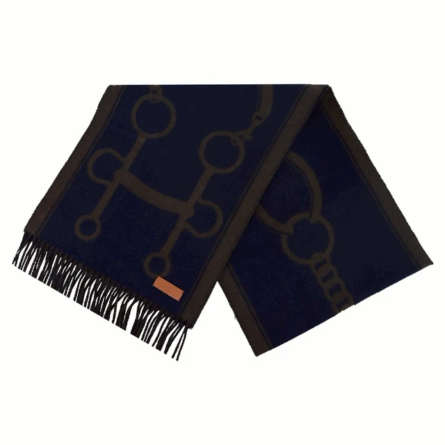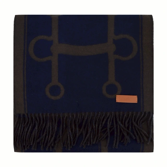[平輸版]Hermes Casaque Mors 喀什米爾羊毛流蘇圍巾(黑色/綠色)
