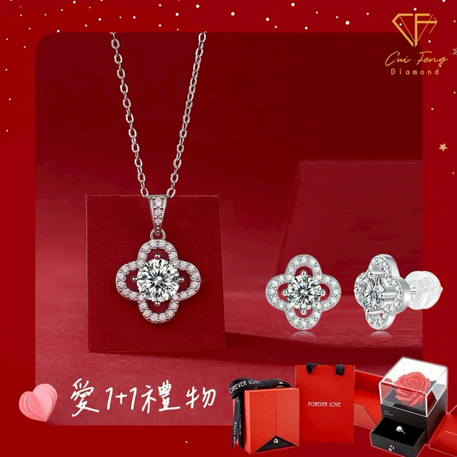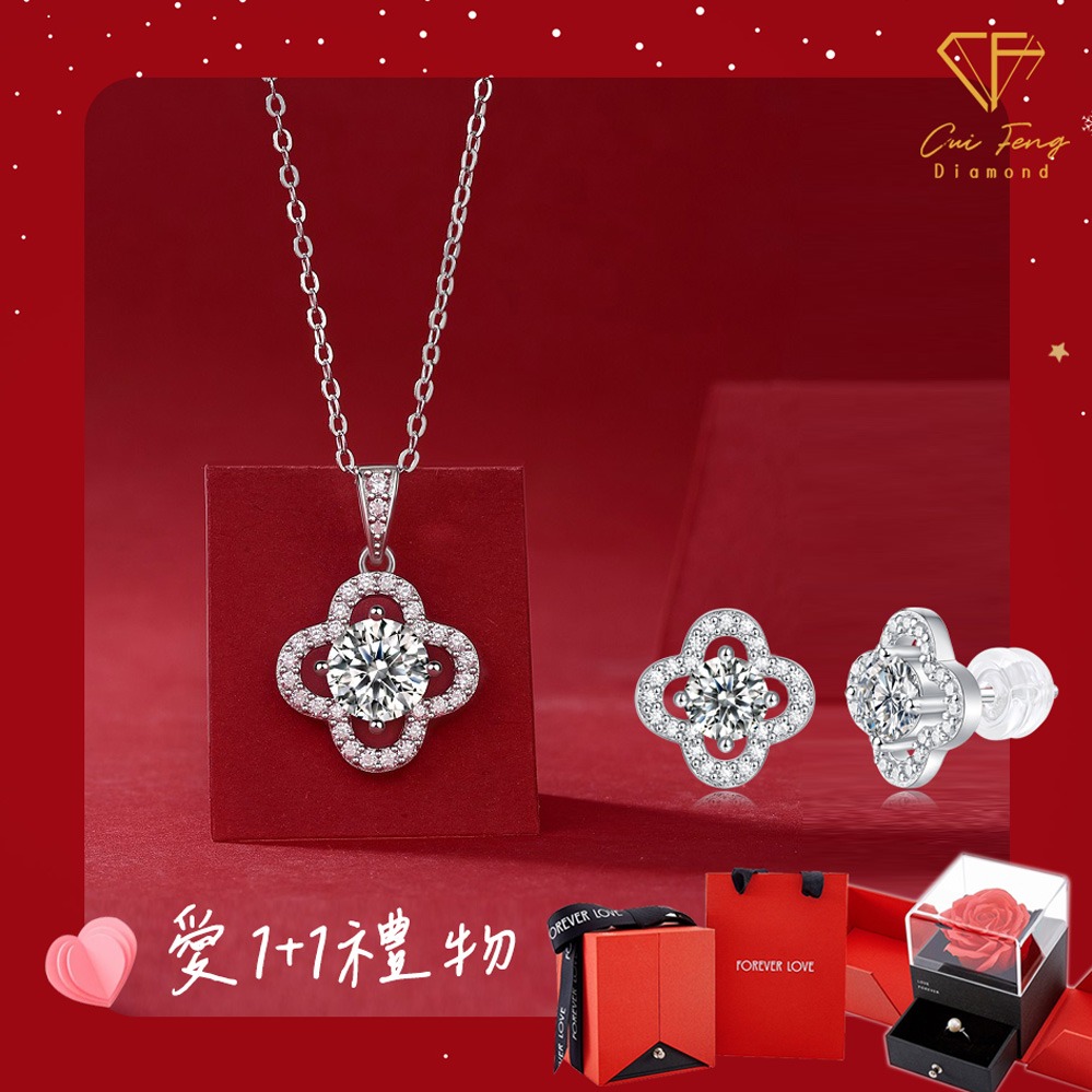[快速出貨]【CF鑽飾】520限定《🌺花款 項鍊+戒指》莫桑鑽 1+1套組 情人節 贈玫瑰花禮盒 生日禮物 送禮
