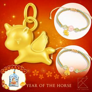 【快速出貨】【TLH】 999純金 馬上好運 黃金金箔吊飾 隨機贈送馬年御守 (馬年 過年)