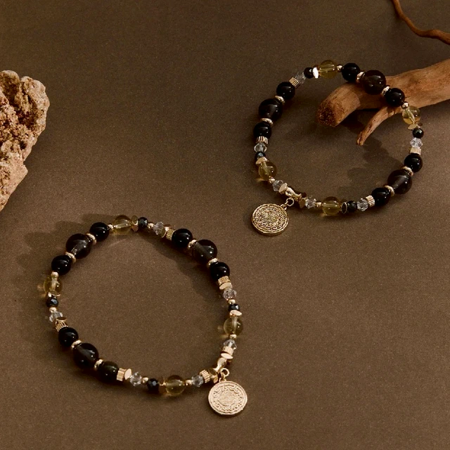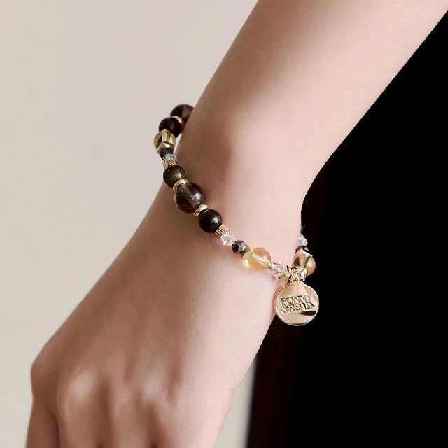 【BONNY&READ飾品】[鋼飾/天然石] 靜守黑曜手鍊 | 韓國 手繩 可調節 黑碧璽髮晶 水晶 中性飾品