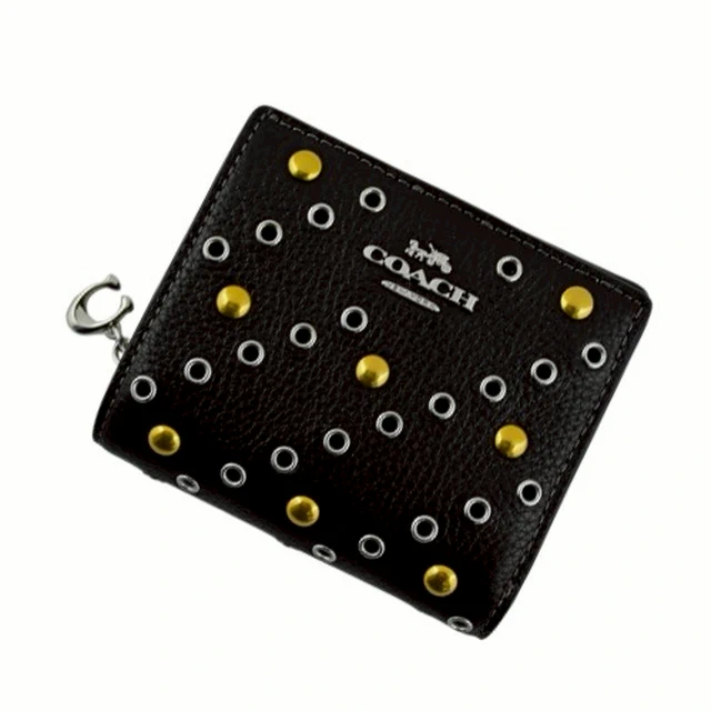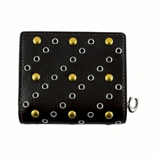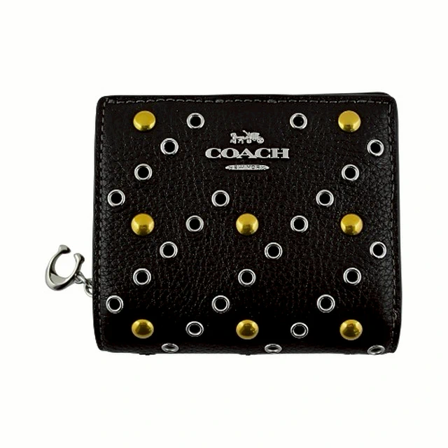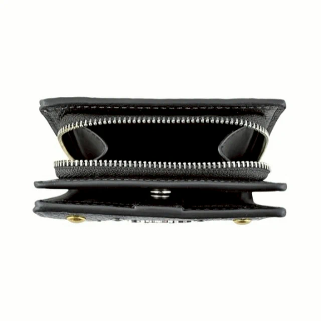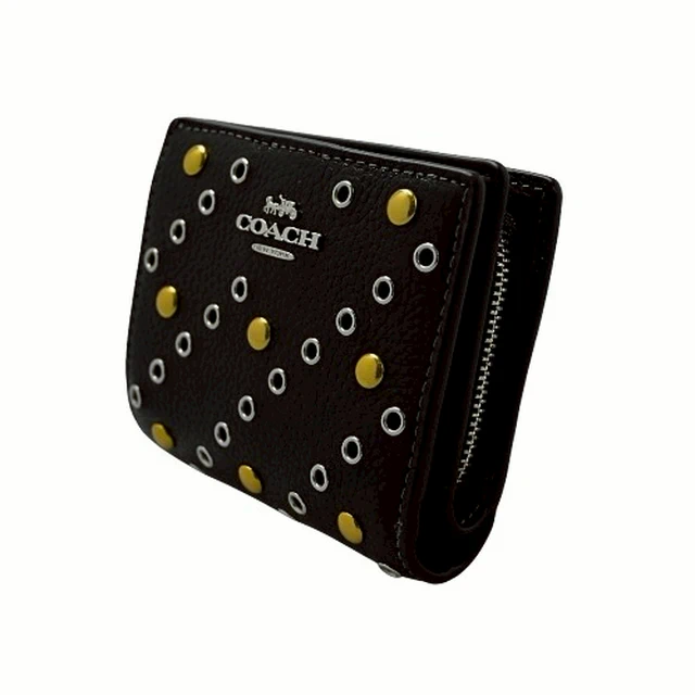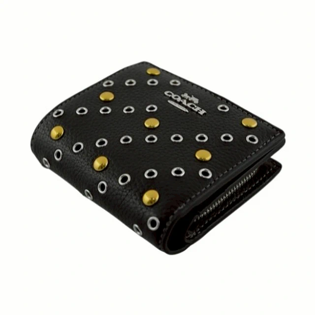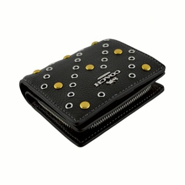 [平輸版] 【COACH】黑色荔枝紋皮革C字拉鍊袋釦式雙摺短夾 真品平輸