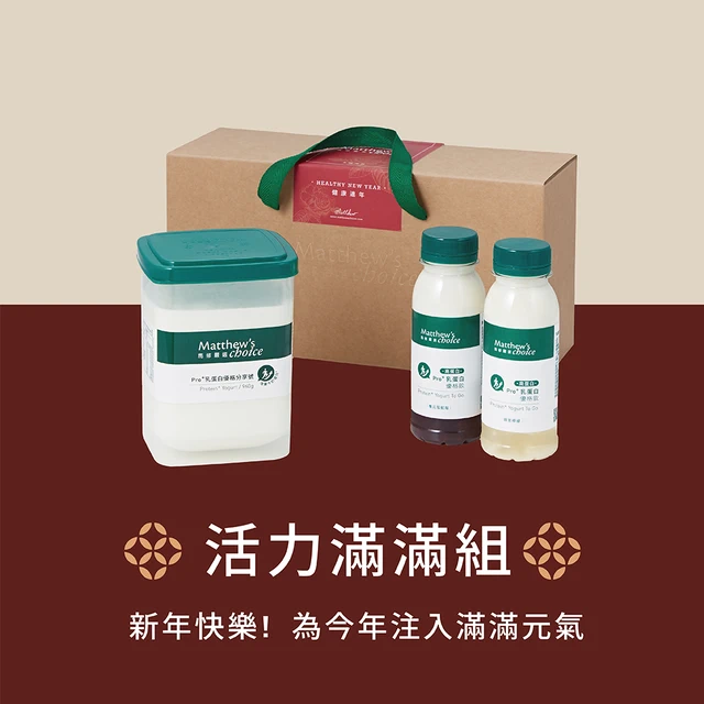 新年快樂!【馬修嚴選】Pro+乳蛋白優格分享號(1罐)&季節烤燕麥(1包,口味隨機)&季節果漿(1罐,口味隨機) | 附禮盒