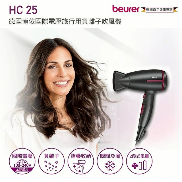 【beurer 德國博依】國際電壓旅行用負離子吹風機 HC 25/HC25 大地棕 三年保固