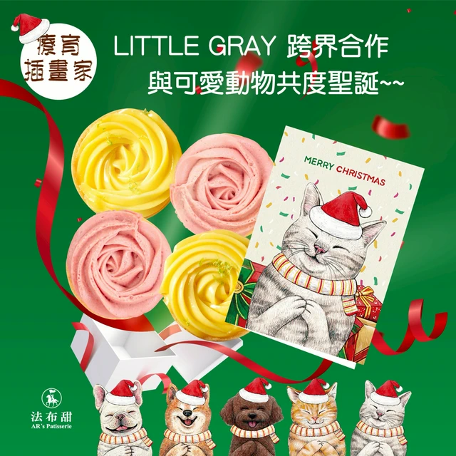 (3日出貨)聖誕限定盲盒|法式玫瑰塔4入盒裝+可愛動物卡片款式隨機 | 聖誕限定【法布甜&LITTLE GRAY】