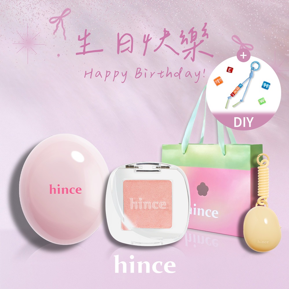 快速出貨【hince】生日快樂!柔光煥彩單色眼影+冰透唇釉+客製串珠吊飾+Dewy Ball提袋+Dewy Ball鑰匙圈(客製化禮物/精美客製吊飾/生日禮物推薦/新品上架)