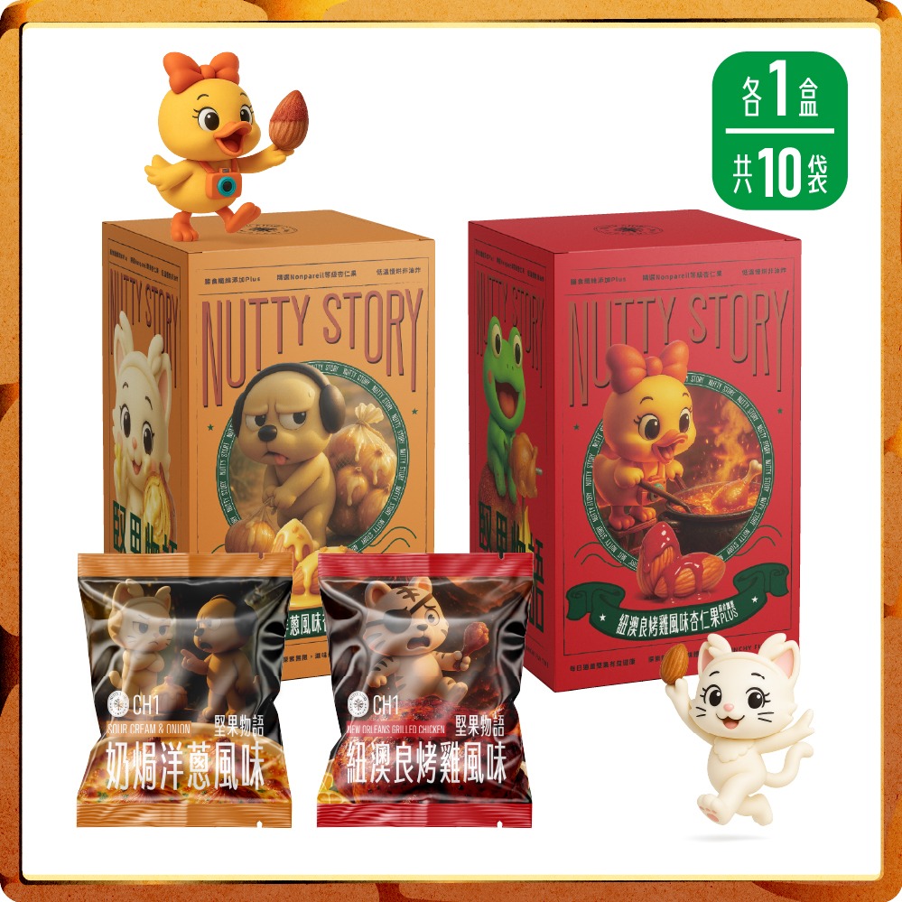 午茶點心最適合【NuttyStory】堅果物語膳食纖維款 - 175g (2盒共10包入-奶焗洋蔥、椒鹽排骨) 堅果 杏仁果 健康營養 好友分享 辦公室點心 下午茶 低溫烘烤 非油炸 伴手禮