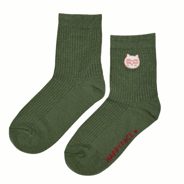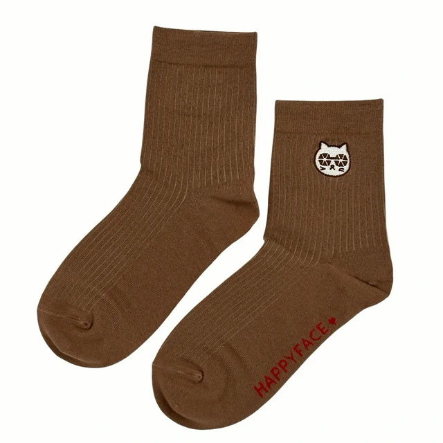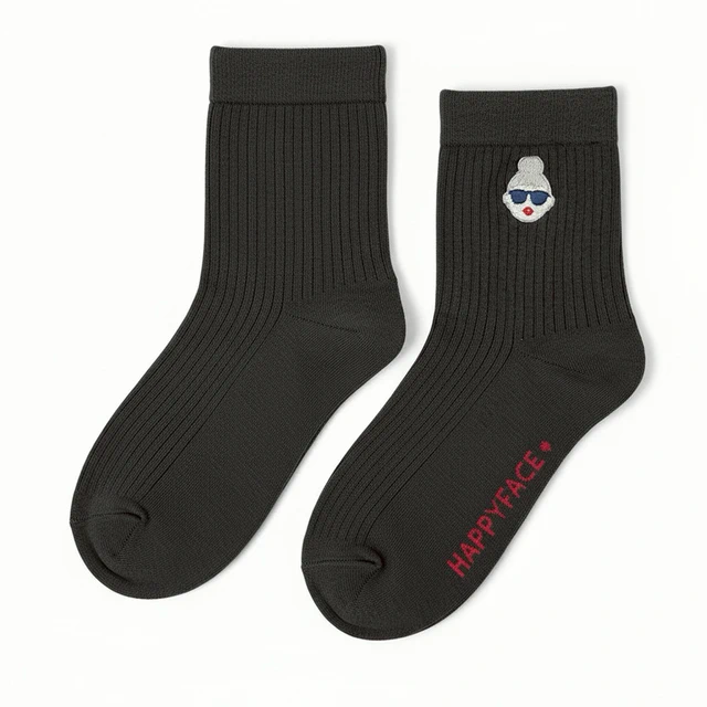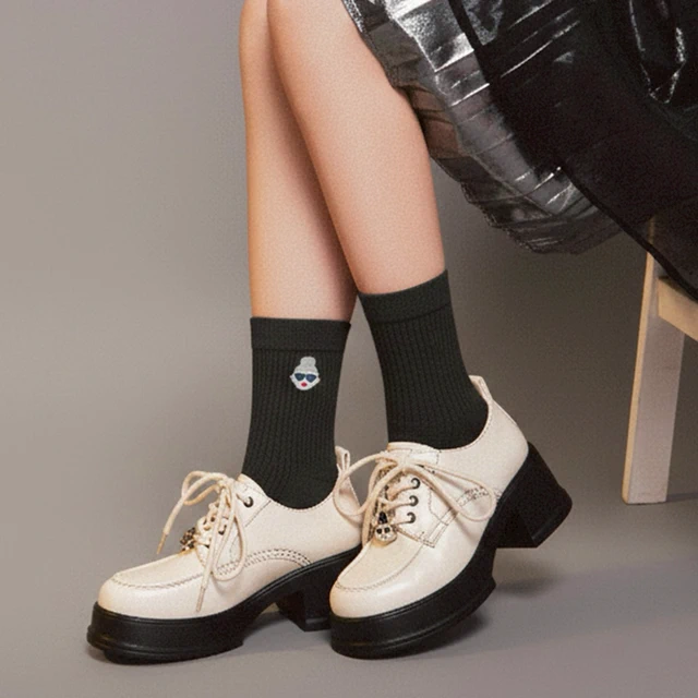 [快速出貨]【HAPPYFACE】 Family復古織紋中筒襪 (HE0197)