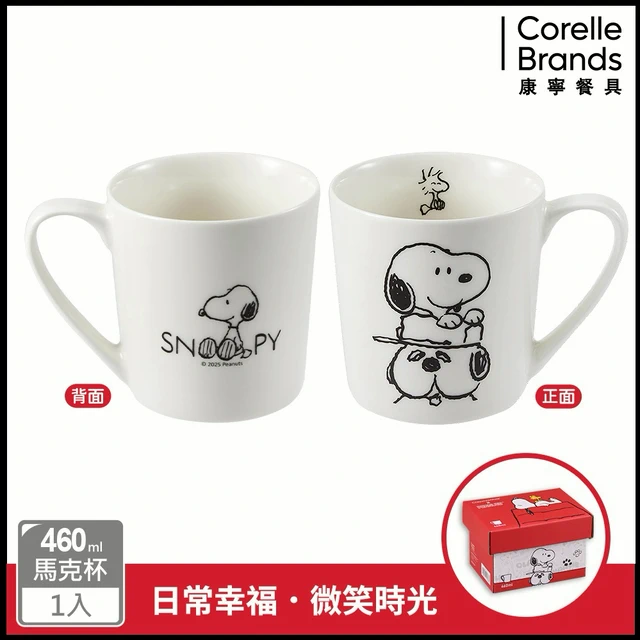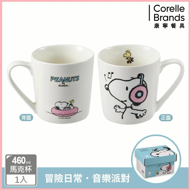 兩入組【美國康寧 CORNINGWARE】SNOOPY史奴比 冒險日常/日常幸福系列 附蓋馬克杯450m