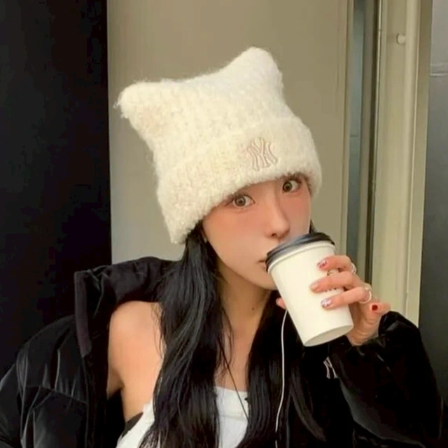 【暖心首選】韓系俏皮貓耳帽(經典黑色/溫柔米色) 羊毛針織帽顯臉小神器 秋冬必備 禦寒保暖蓄熱 親膚柔軟不扎大頭圍友善 韓星同款絨毛毛防寒帽子 生日禮物 交換禮物 情人節禮物 女友閨蜜禮物實用質感推薦