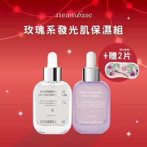 🎁節日限定❤【STEAMBASE】玫瑰系發光肌保濕組-玫瑰亮白緊緻精華液+毛孔緊緻精華液+贈眼罩體驗x2片(贈品為即期體驗品/香味隨機)