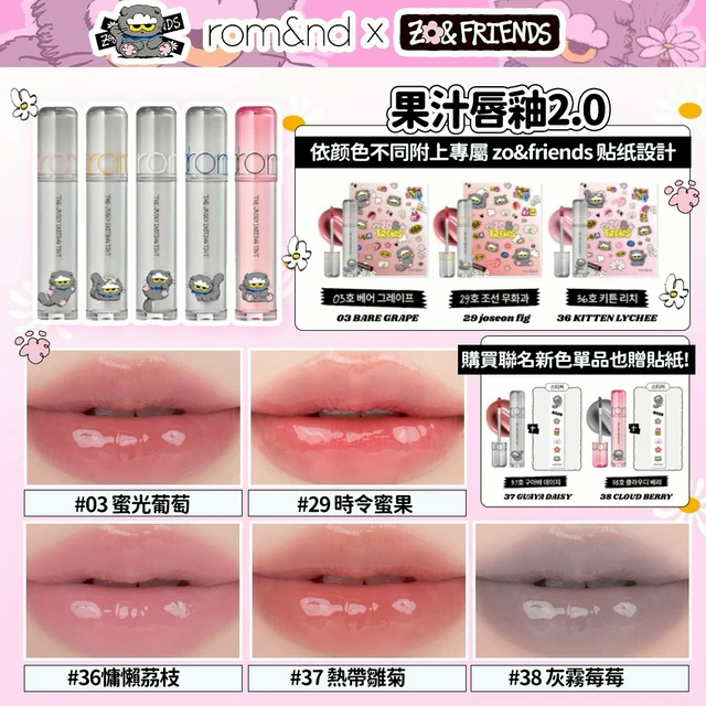 [快速出貨]【Romand / rom&nd】rom&nd × ZO&FRIENDS 果汁唇釉 2.0(含貼紙) 3.5g ZOA