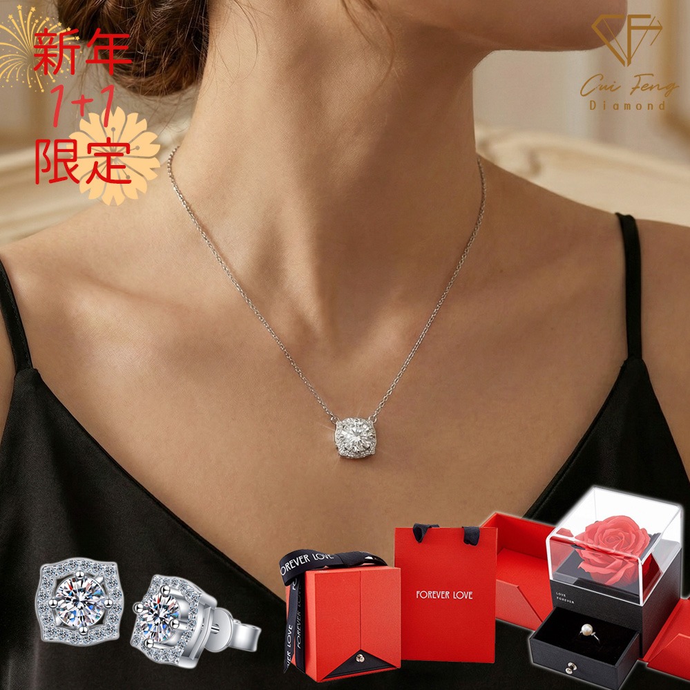 [快速出貨]【CF鑽飾】520限定《💎滿鑽款 耳環+項鍊》莫桑鑽 1+1套組 情人節 贈玫瑰花禮盒 生日禮物 送禮