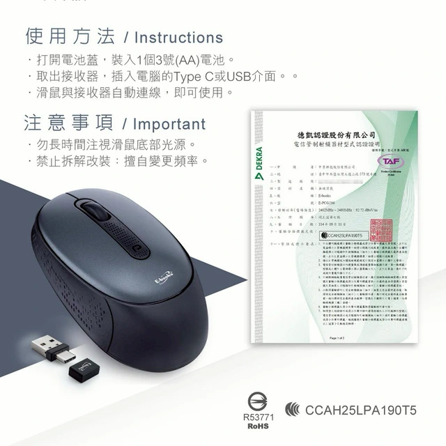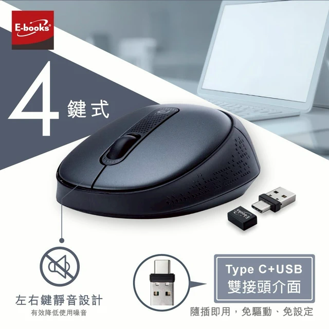 快速出貨🚚【My Love你值得擁有_+$111多1件玻璃吸管組】人體工學六鍵式超靜音無線滑鼠(小/中手適用)M75 E-books