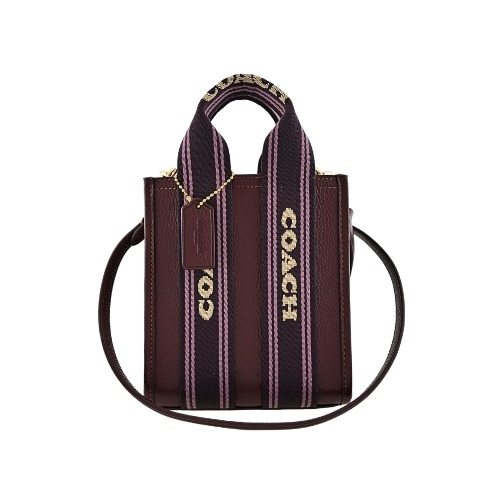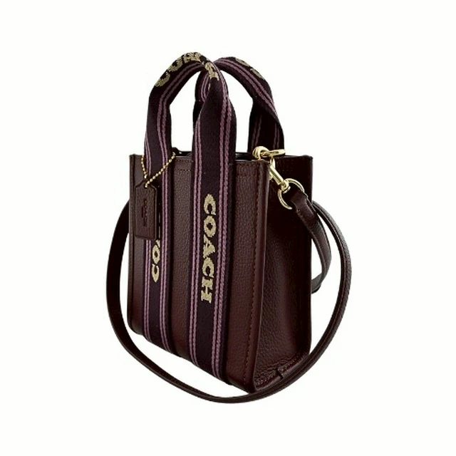 [平輸版] 【COACH】C LOGO緹花布拼接荔枝紋皮革手提/斜背迷你琴譜托特包 真品平輸