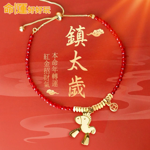 和福氣鍊在一起【命運好好玩】馬上來財紅晶線手鍊+黃金磚紅晶線手鍊