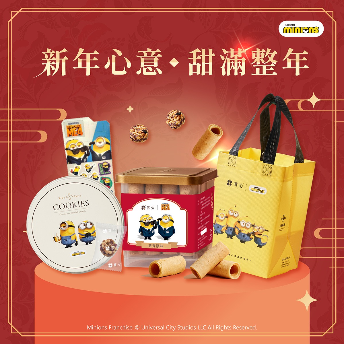 新年快樂♡快速出貨【實心蛋捲 |小小兵聯名】小圓米香 過年 新春送禮 馬年行大運