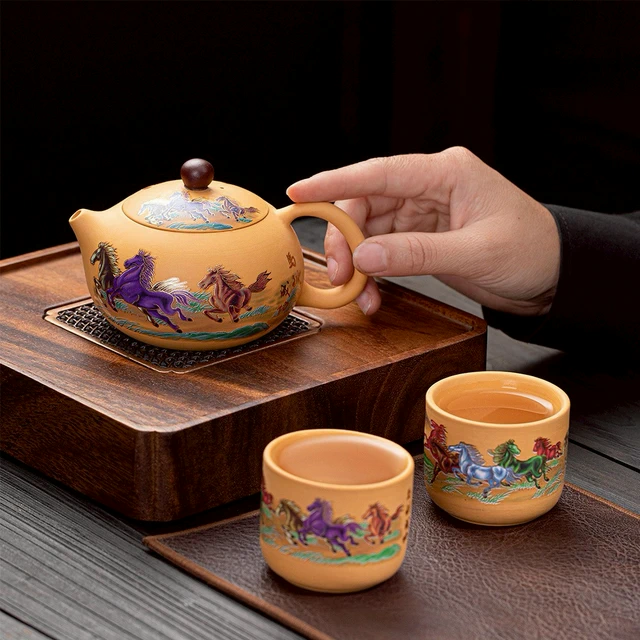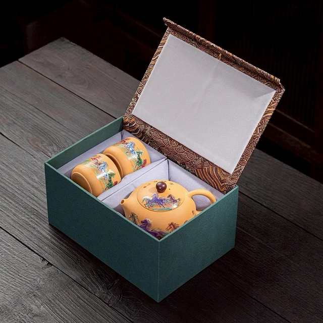 [快速出貨]【BRAVOMART HOME】紫砂鎏金茶具套裝 一壺四杯禮品組 客製化刻字 入厝禮 升遷禮 商務送禮 摩羯座 水瓶座 禮物獨家 新品上市 情人節禮物