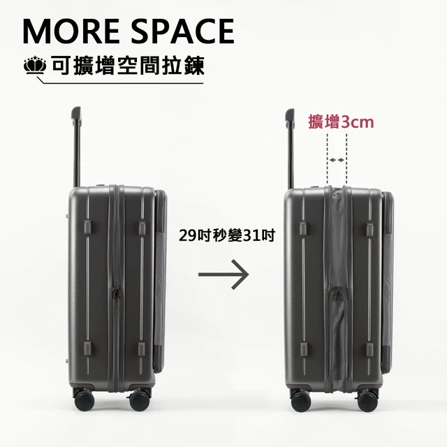 29吋 TAIKING 上掀式 PC行李箱 多段式鋁合金拉桿/上掀式/可擴增空間/避震剎車輪/雙充電孔/飲料架/立體側腳掛勾