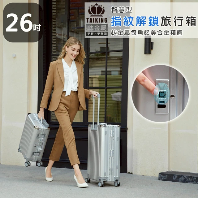 【買1送5】20吋 TAIKING鈦金屬包角/鋁鎂合金/智能指紋解鎖行李箱/旅行箱