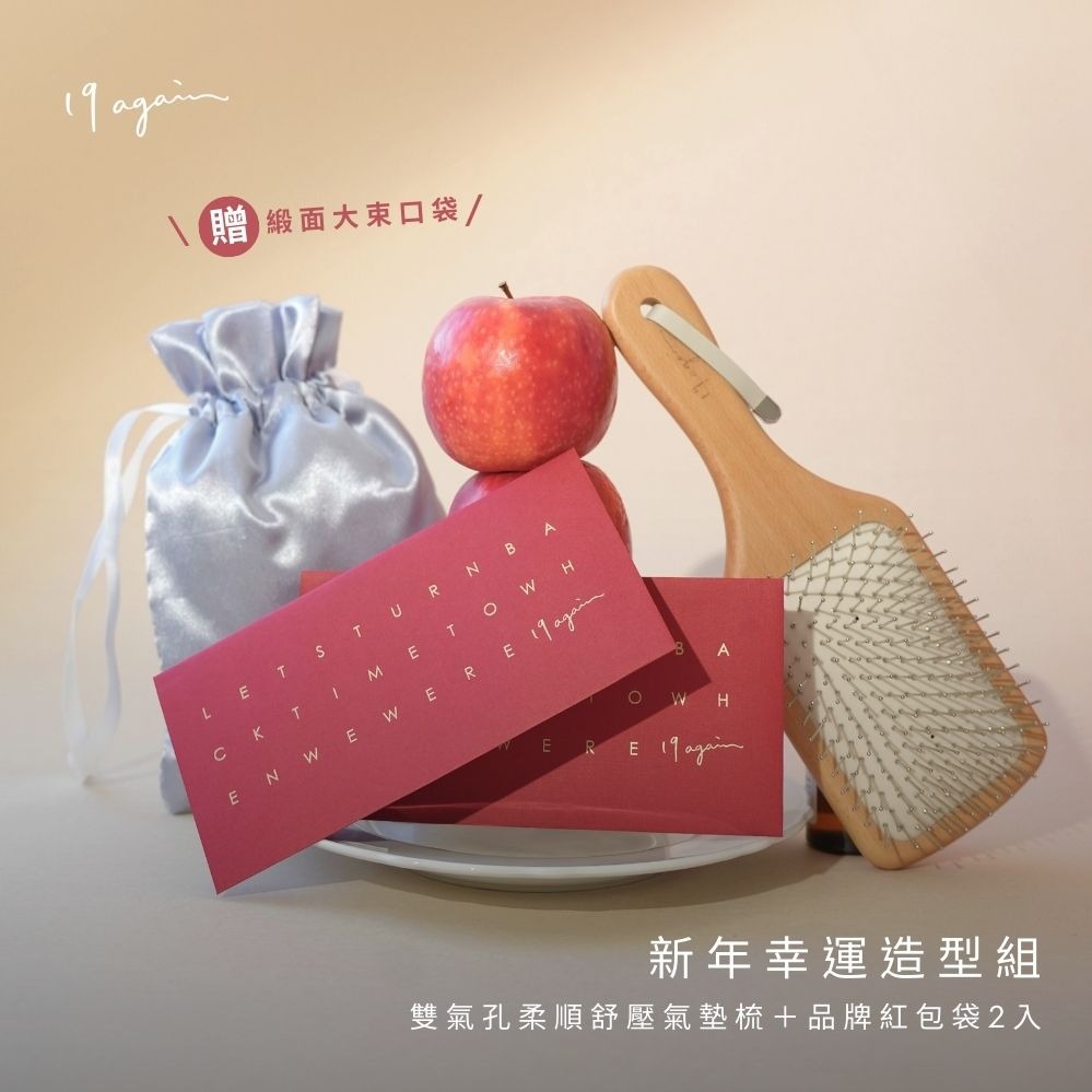 【19again】天天好事活力組:氣墊隨身梳+賦活髮香水(香調可選)+品牌紅包袋2入 - 新年禮物/開運好禮/送禮推薦