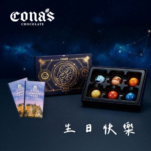 禮物獨家【Cona's妮娜巧克力】雙魚座🎉生日快樂|星座六入巧克力X1盒+妮娜巧克力夢想城堡門票2張