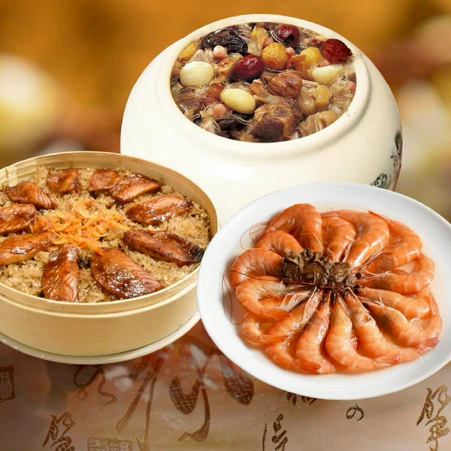 [指定區間出貨]圍爐年菜🍲【錦霞樓】年菜3件組(紅蟳干貝米糕+胡椒豬肚干貝雞湯+魷魚螺肉蒜)(含運)【墊腳石】