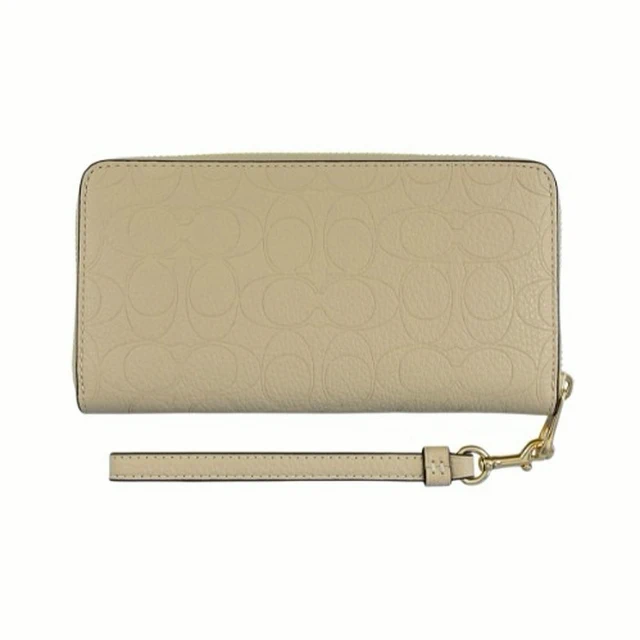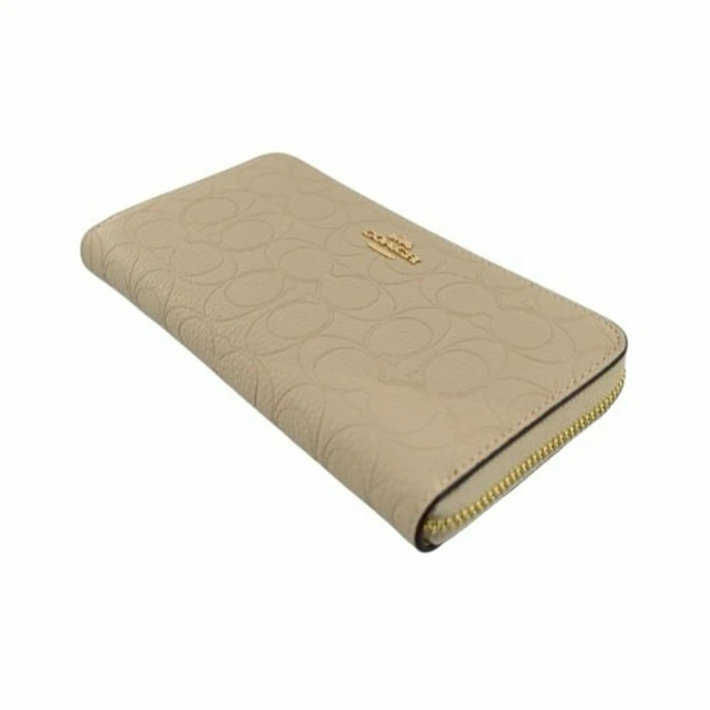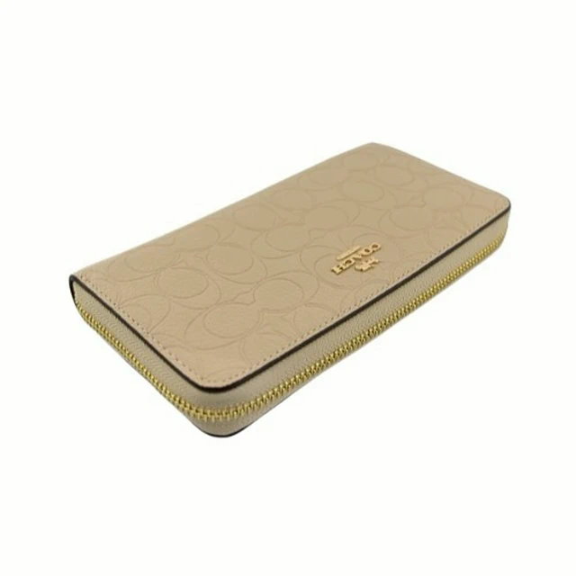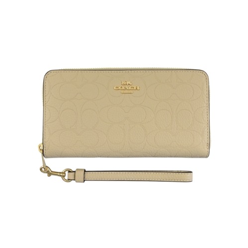 [平輸版] 【COACH】沙色C LOGO PVC附活動卡夾皮革手掛帶拉鍊長夾 真品平輸