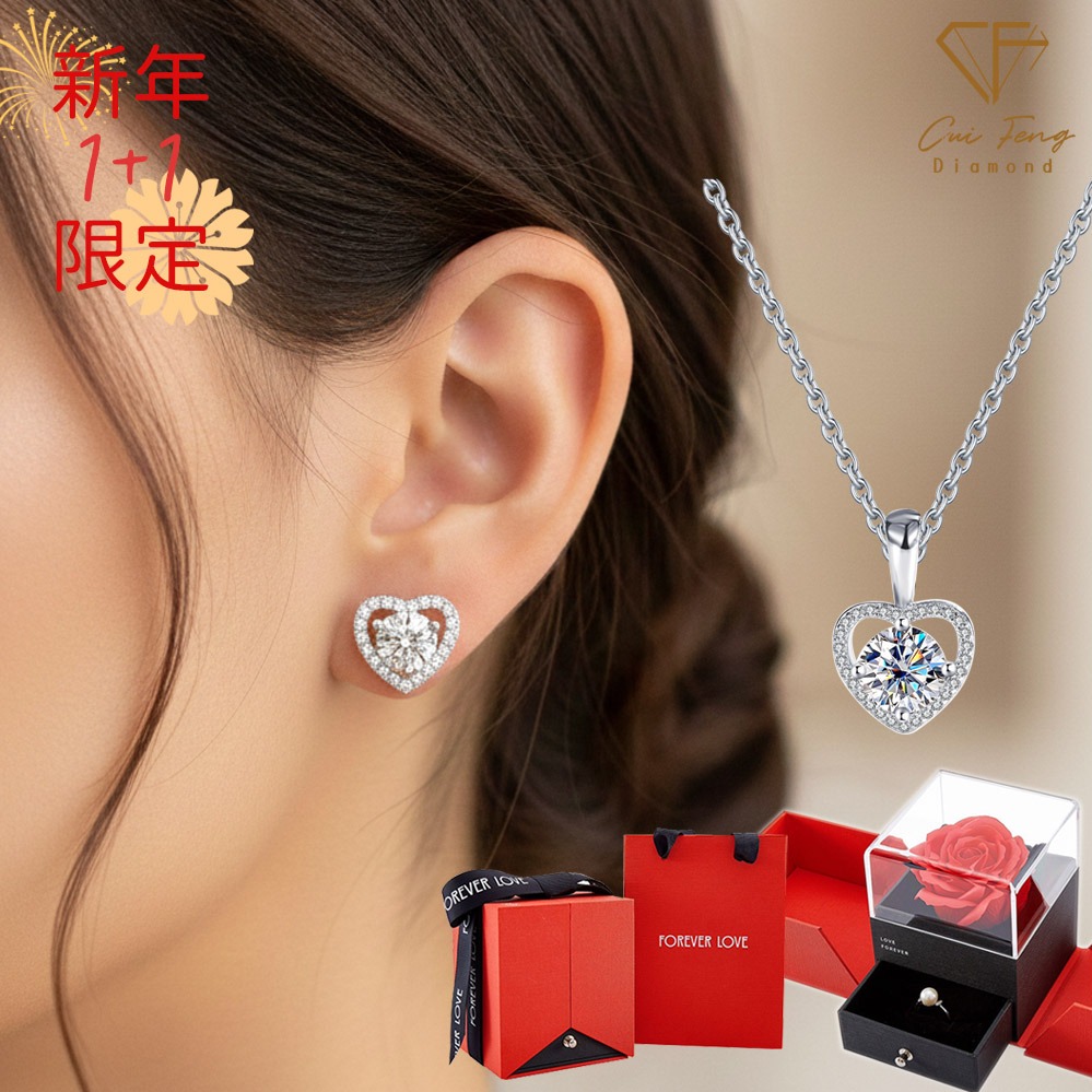 [快速出貨]【CF鑽飾】520限定《♥️真心款 項鍊+耳環》莫桑鑽 1+1套組 情人節 贈玫瑰花禮盒 生日禮物 送禮