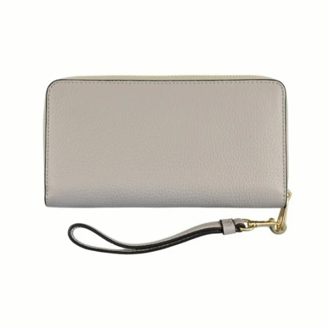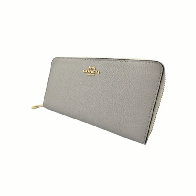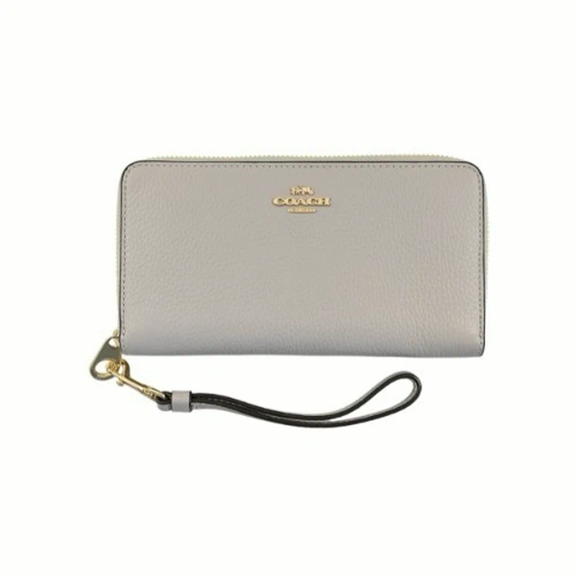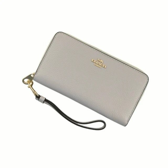 [平輸版] 【COACH】燕麥色C LOGO壓印荔枝紋皮革手掛拉鍊長夾 真品平輸