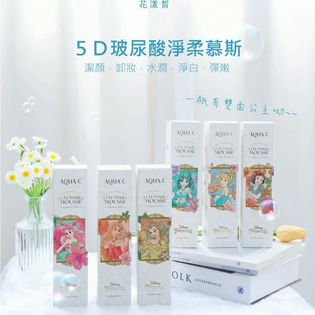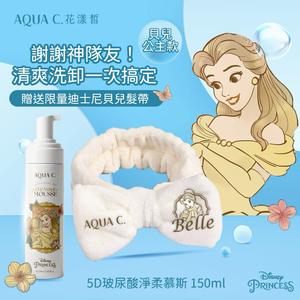 [快速出貨]【AQUA C.花漾皙|Disney迪士尼】保養品|謝謝神隊友!清爽洗卸一次搞定|貝兒款-5D玻尿酸淨柔慕斯 150ml 贈 限量迪士尼貝兒髮帶