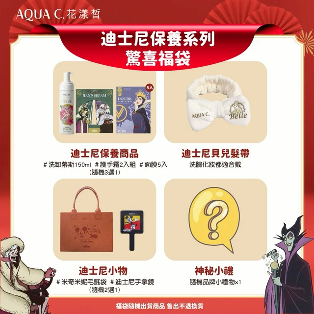 [快速出貨]【AQUA C.花漾皙|Disney迪士尼】保養品|雙魚座生日禮物🎁肌光雙V面膜(5入/盒)+5D洗卸慕斯+贈Disney 手拿鏡/附小提袋