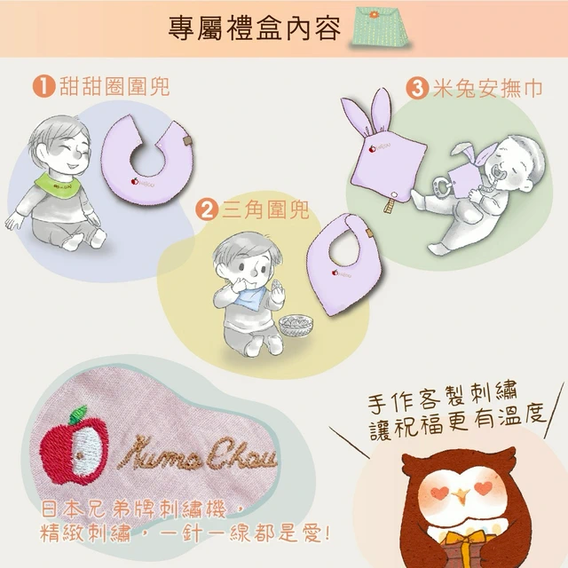 【喜福HiBOU】超人氣の口水怪寶寶救星.有機棉強力吸水口水巾圍兜-4件組好替換