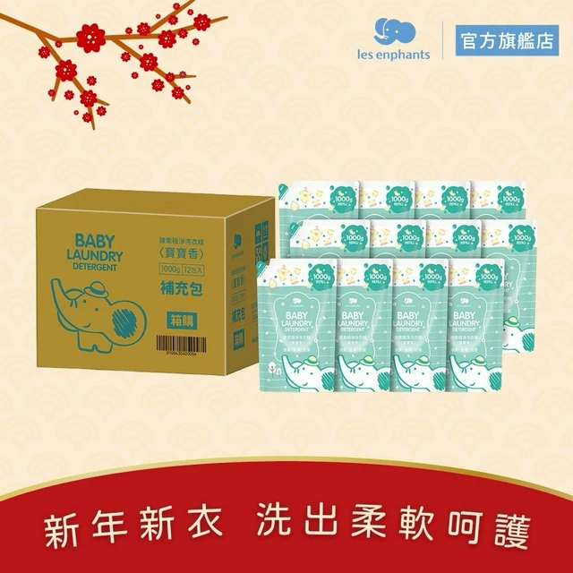 【麗嬰房les enphants】清甜果香植淨洗衣精補充包12入 箱購 | 官方旗艦店 箱購 12入組 抗菌防護 植萃酵素 台灣製造 囤貨必買