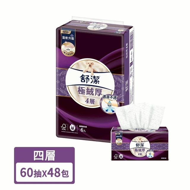 【舒潔】極絨厚四層抽取衛生紙 60抽x6包x4串