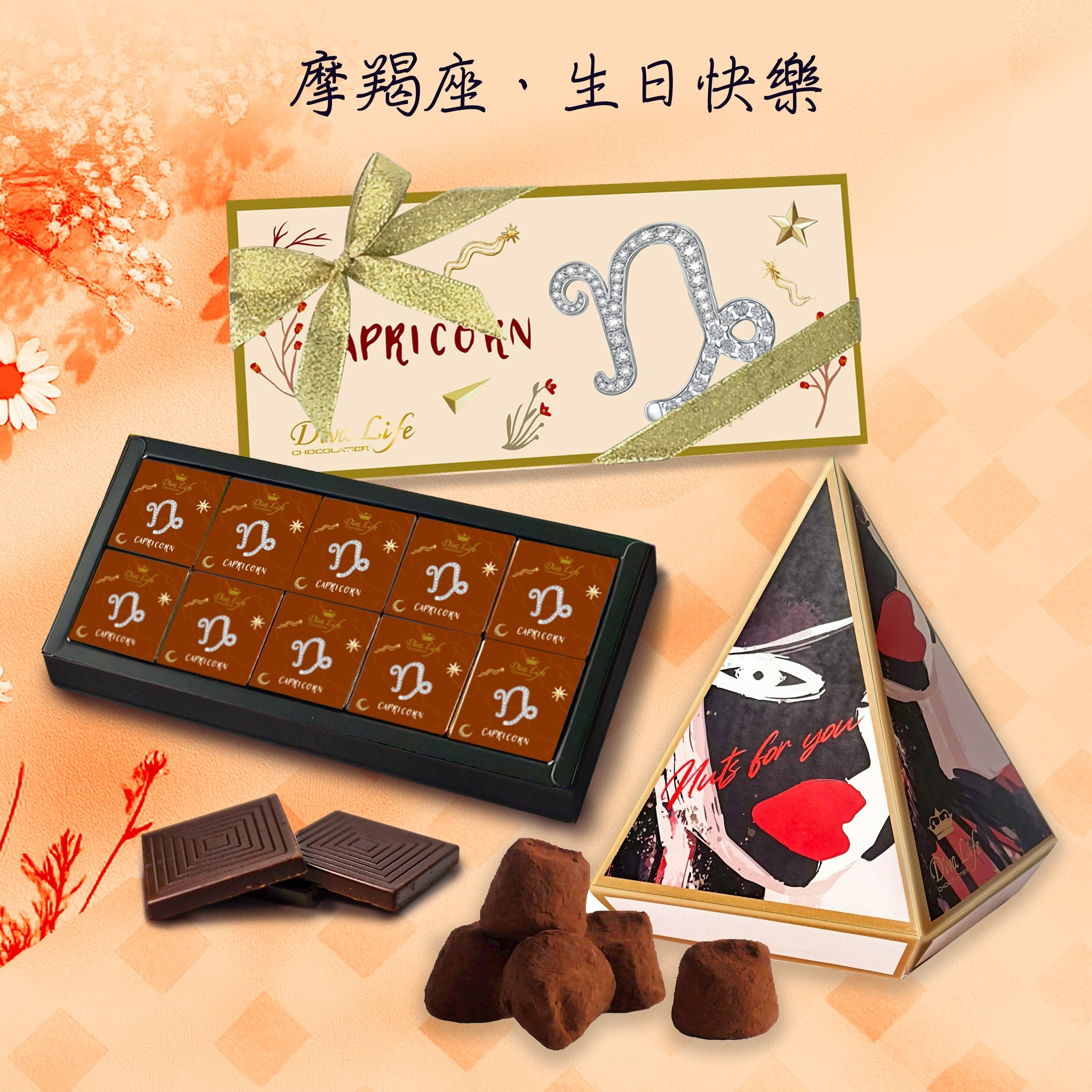 快速出貨【Diva Life】水瓶座夾心巧克力10入禮盒 |水瓶座、星座禮盒、生日、送禮