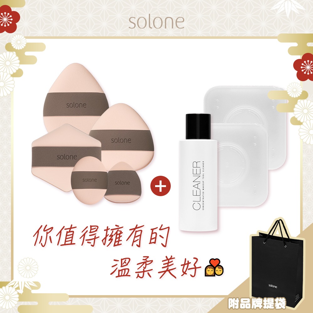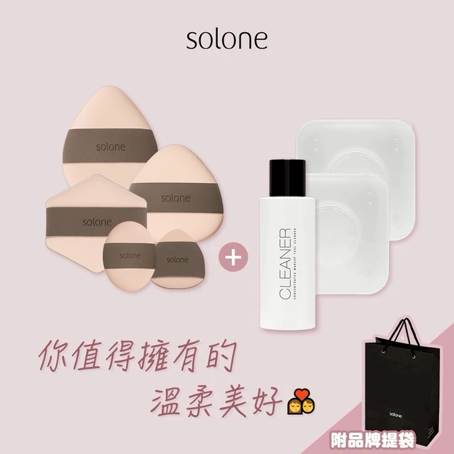 【Solone】可可粉撲完備組☁️彈力訂製舒芙蕾海綿扇形3入+加大扇形3入+海綿專屬收納盒2入+水洗清潔液