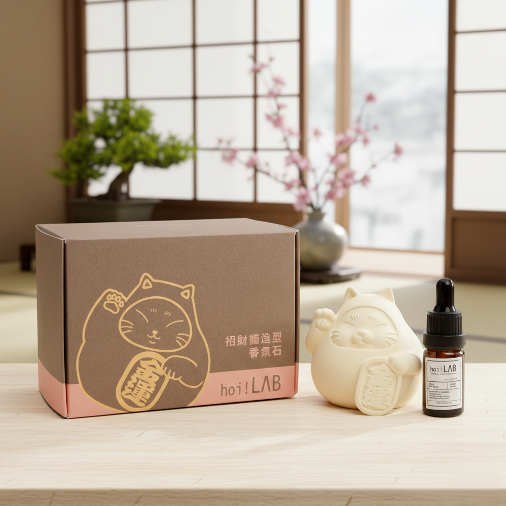 【新年禮盒】胖胖招財招福貓 (小)+精油禮盒(收禮者可任選)