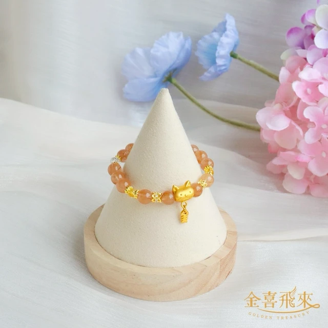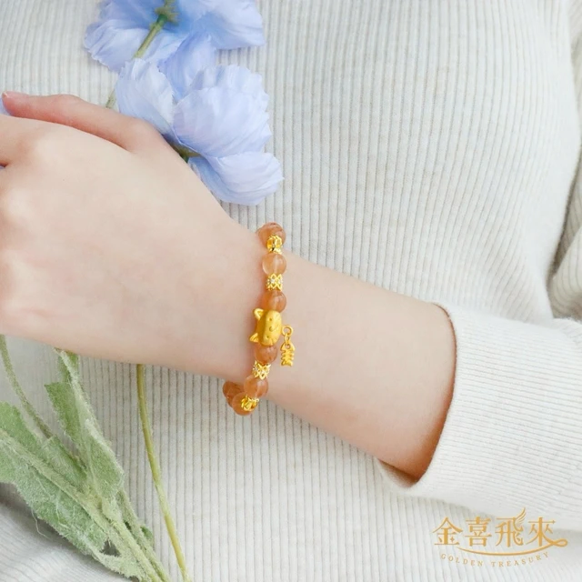 【金喜飛來】黃金手鍊桃花水晶串(0.07錢±0.03)【快速出貨】