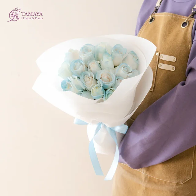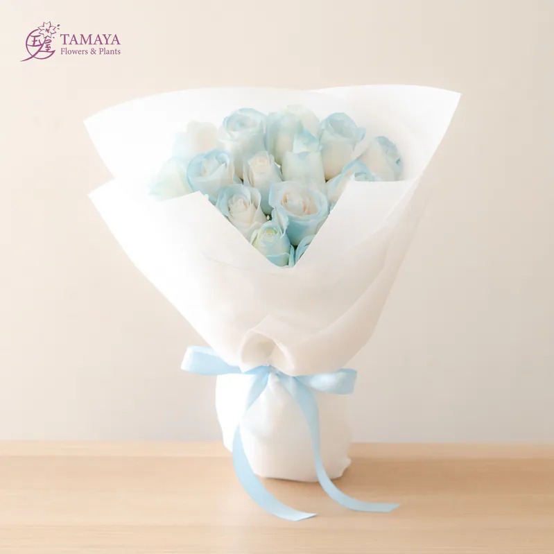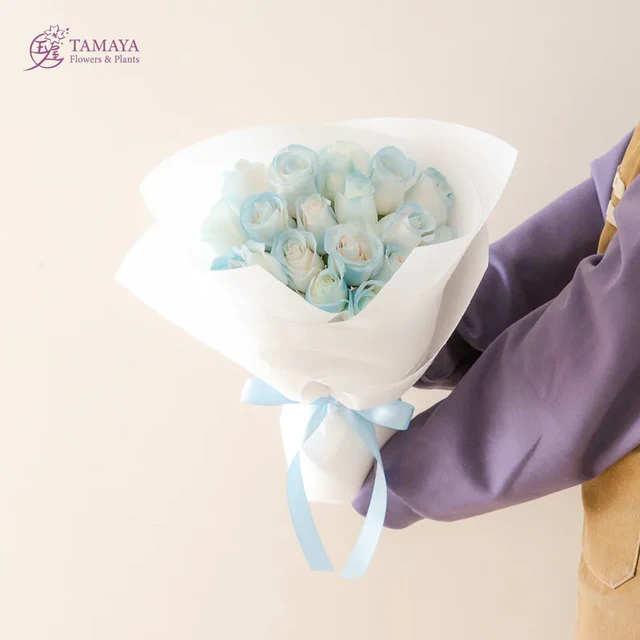 總為你牽掛【玉屋 TAMAYA】霧白x群青 3朵玫瑰花束 代寫卡片 情人節快樂 情人節花束 告白花束 我愛你 玫瑰花束 女生禮物 花禮推薦
