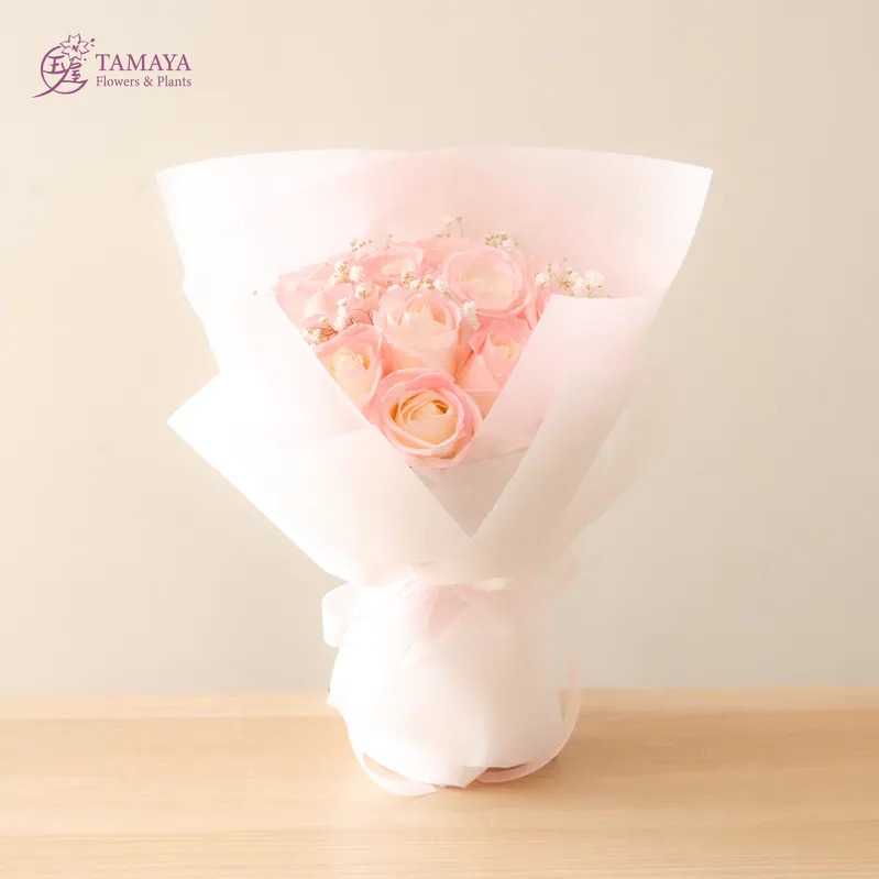 幸福長伴左右【玉屋 TAMAYA】薄桜恋玫瑰花束|18朵 代印卡片 情人專屬花束 情人節快樂 情人節花禮 情人獻禮 傳遞情意 永恆的愛 幸福浪漫 520
