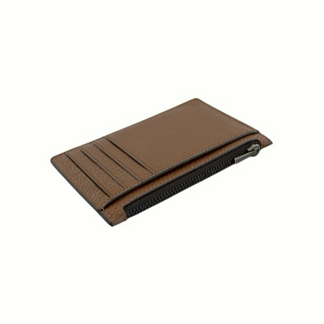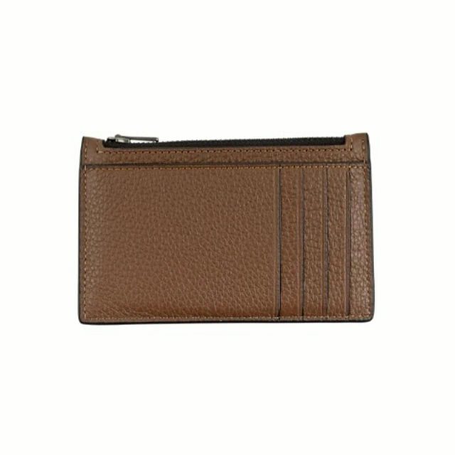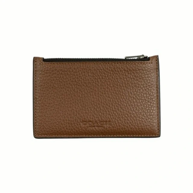 [平輸版] 【COACH】灰褐色荔枝紋皮革附活動卡夾皮革手掛帶拉鍊長夾 真品平輸