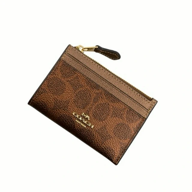 [平輸版] 【COACH】胡桃木C LOGO PVC拼接皮革頸掛式證件票卡夾 真品平輸