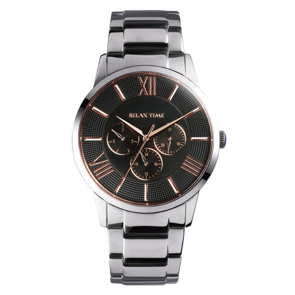 RELAX TIME 三眼腕錶 黑潮優雅|玫瑰金 (RT-81-2)