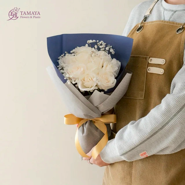對你一心一意【玉屋 TAMAYA】淡雪恋玫瑰花束|11朵 代印卡片 情人專屬花束 情人節快樂 情人節花禮 情人獻禮 傳遞情意 永恆的愛 幸福浪漫 520
