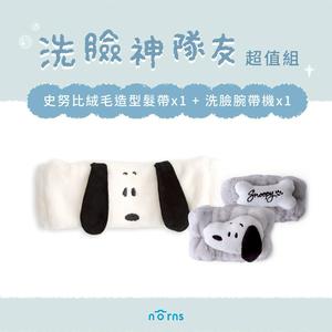 洗臉神隊友組合Peanuts史努比絨毛造型髮帶+史努比灰色造型洗臉腕帶