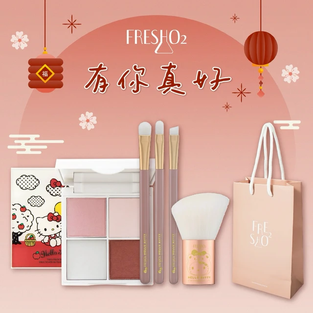 [快速出貨]【FreshO2】三麗鷗聯名HelloKitty勢必有4把刷具組+上妝海綿小幫手3入 眼影刷 粉撲|生日禮物 送禮 新年彩妝福袋 情人節 畢業禮 聖誕 耶誕 紀念日 喬遷 交換禮物