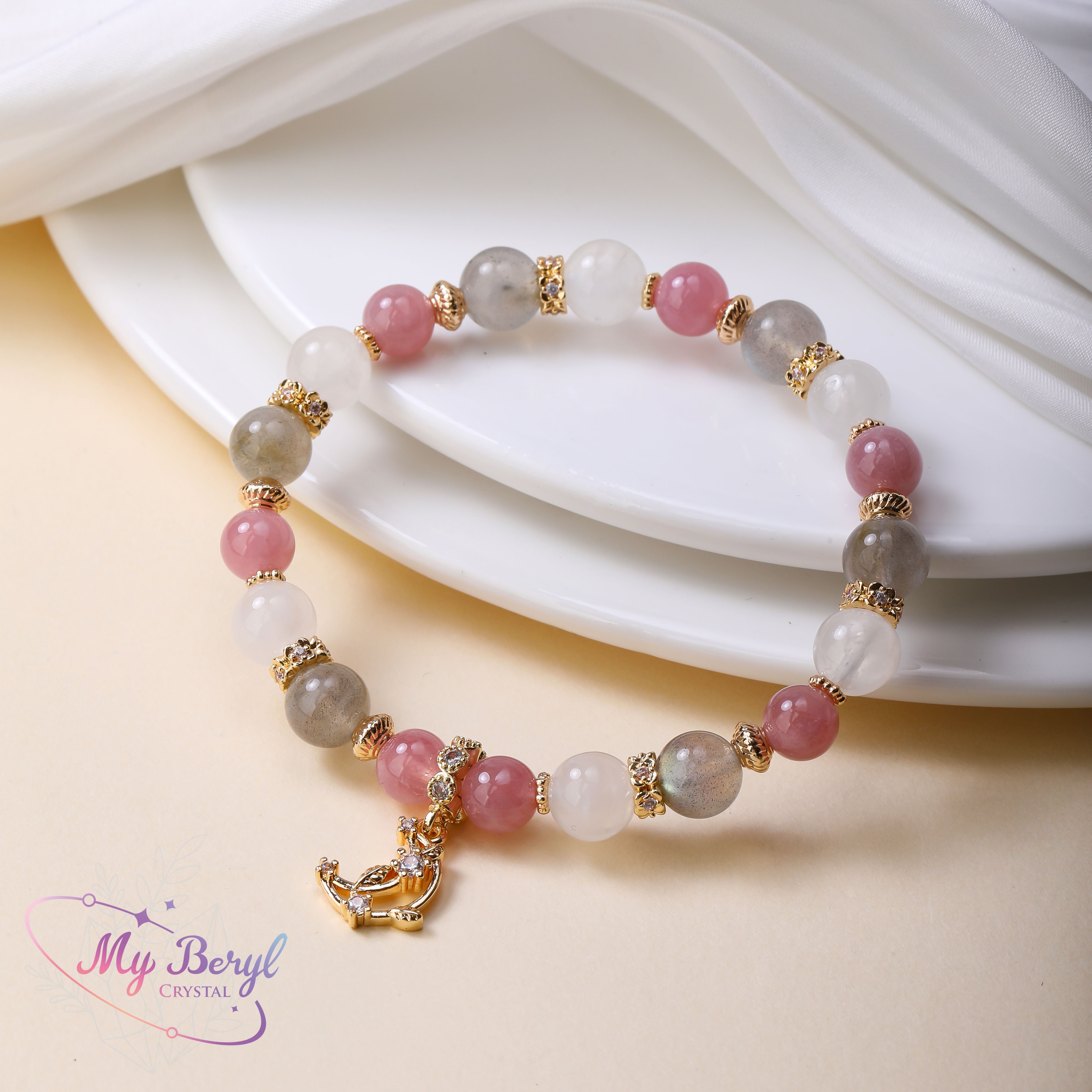 【My Beryl 水晶】粉晶 × 黃水晶 × 拉長石 × 金太陽 × 月光貔貅|好運滿盈手鍊