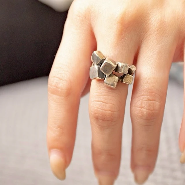 MUJA JUMA 方形幾何 | 925純銀鍍18K金戒指