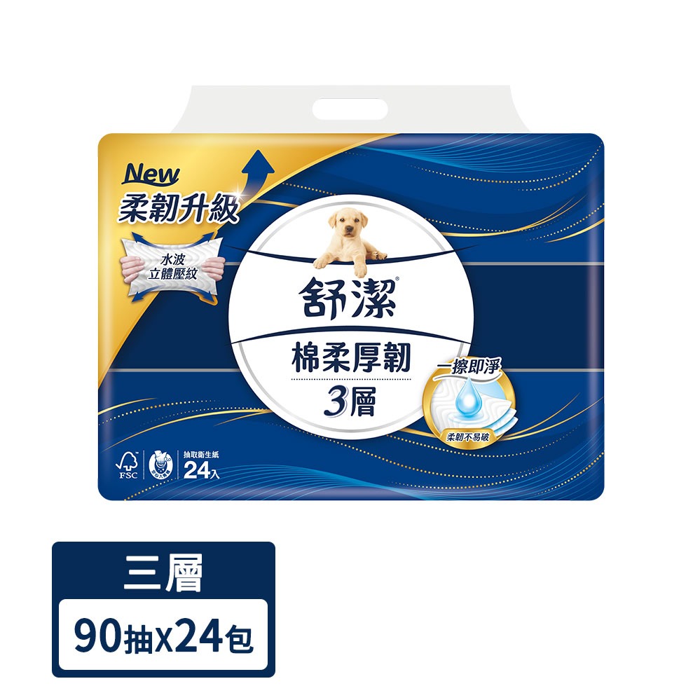 舒潔 棉柔厚韌三層抽取式衛生紙 90抽X24包X3串