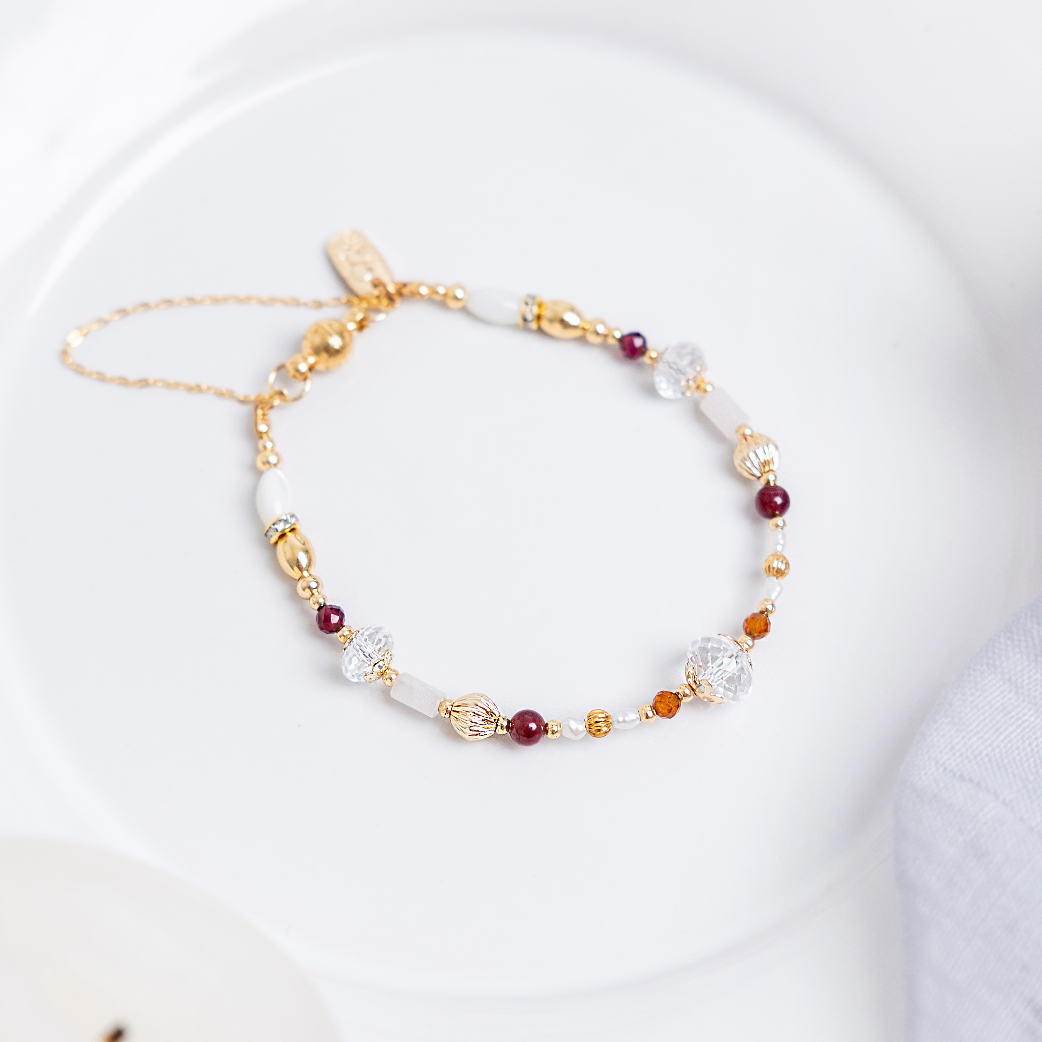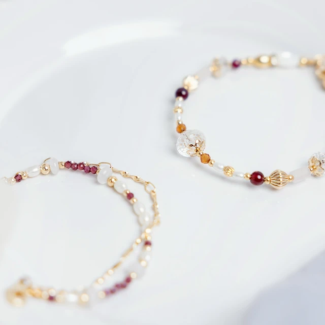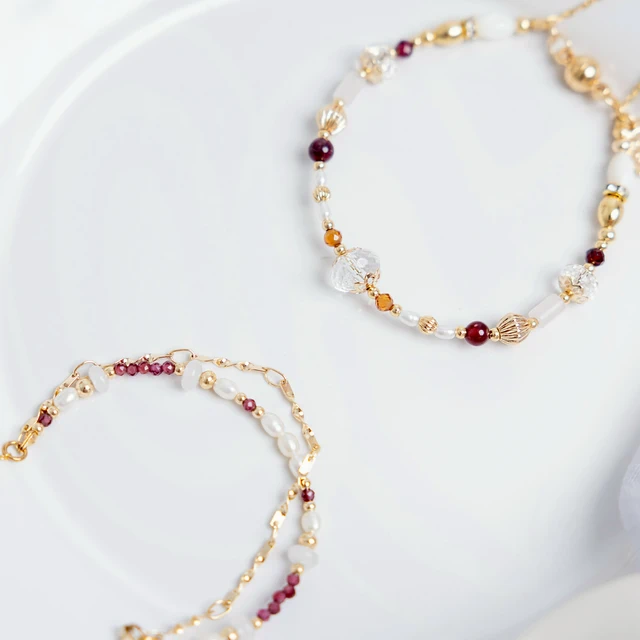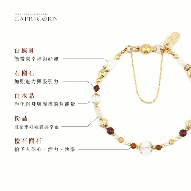 【Ficelle輕珠寶】一月誕生石 • 幸運日記| 石榴石 淡水珍珠 白瑪瑙 太陽石 橙石榴石 誕生石 摩羯座 水瓶座 生日水晶 黃銅鍍18K金 手鍊
